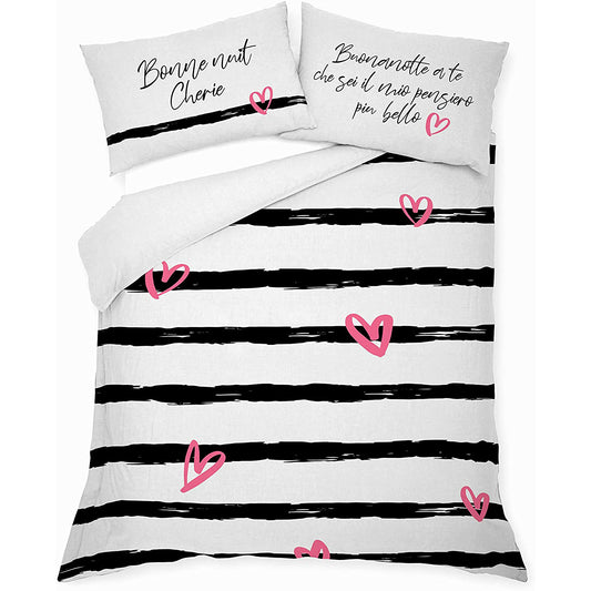 Copripiumino “CUORE DARK” (+2 federe decorative)